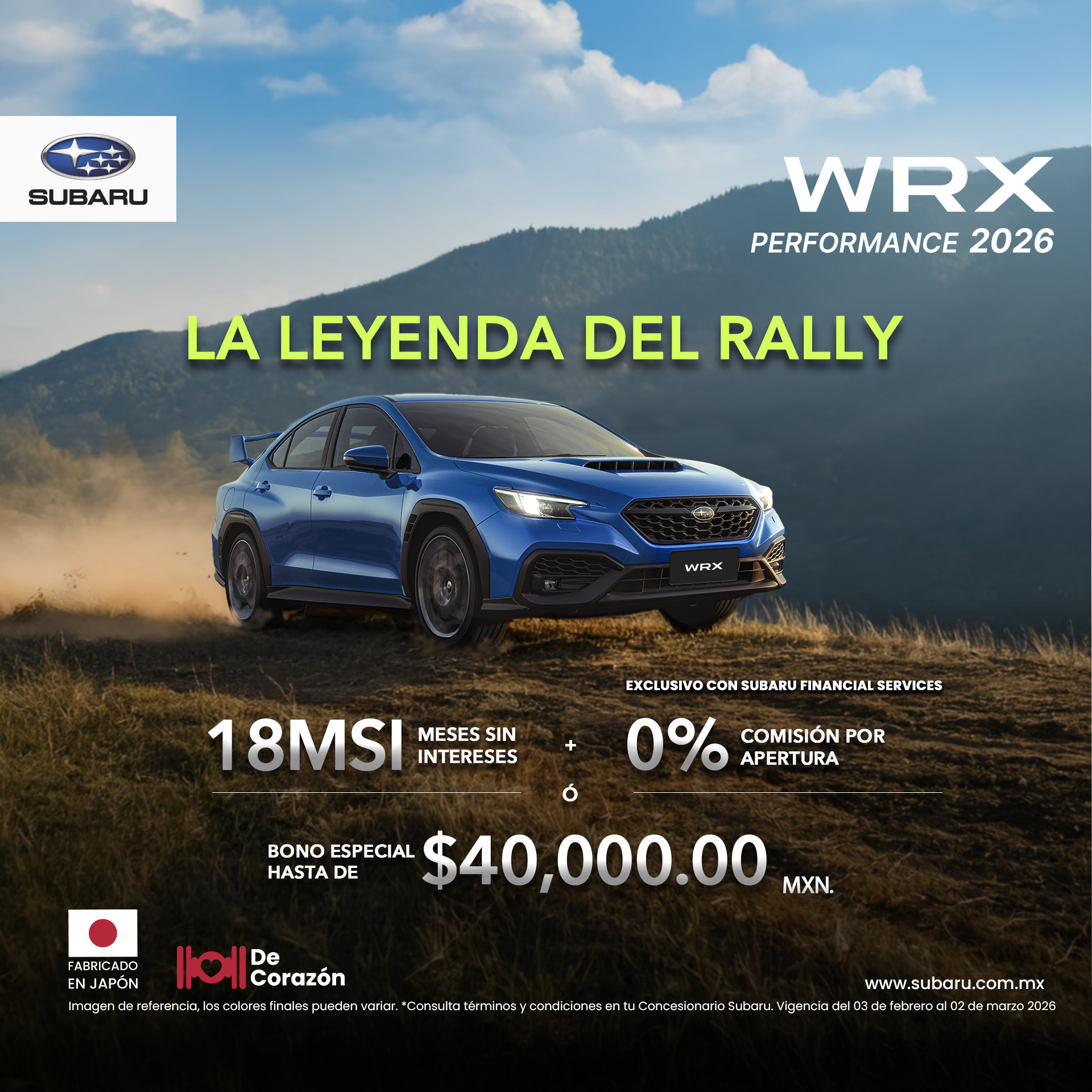 CAMINO DEL SOL AUTOS S DE RL DE CV, es un sociedad mercantil debidamente constituida de conformidad con la legislación de los Estados Unidos Mexicanos, bajo la marca de SUBARU, sucursal TIJUANA, con domicilio en Avenida / Calle Vía Rápida Oriente número 6810, Colonia Rio Tijuana 3ra Etapa, Código Postal 22226, Alcaldía / Municipio / Localidad Tijuana, Estado Baja California, México, la cual es responsable del tratamiento de los datos personales que proporcione (en adelante, la "SUBARU TIJUANA").